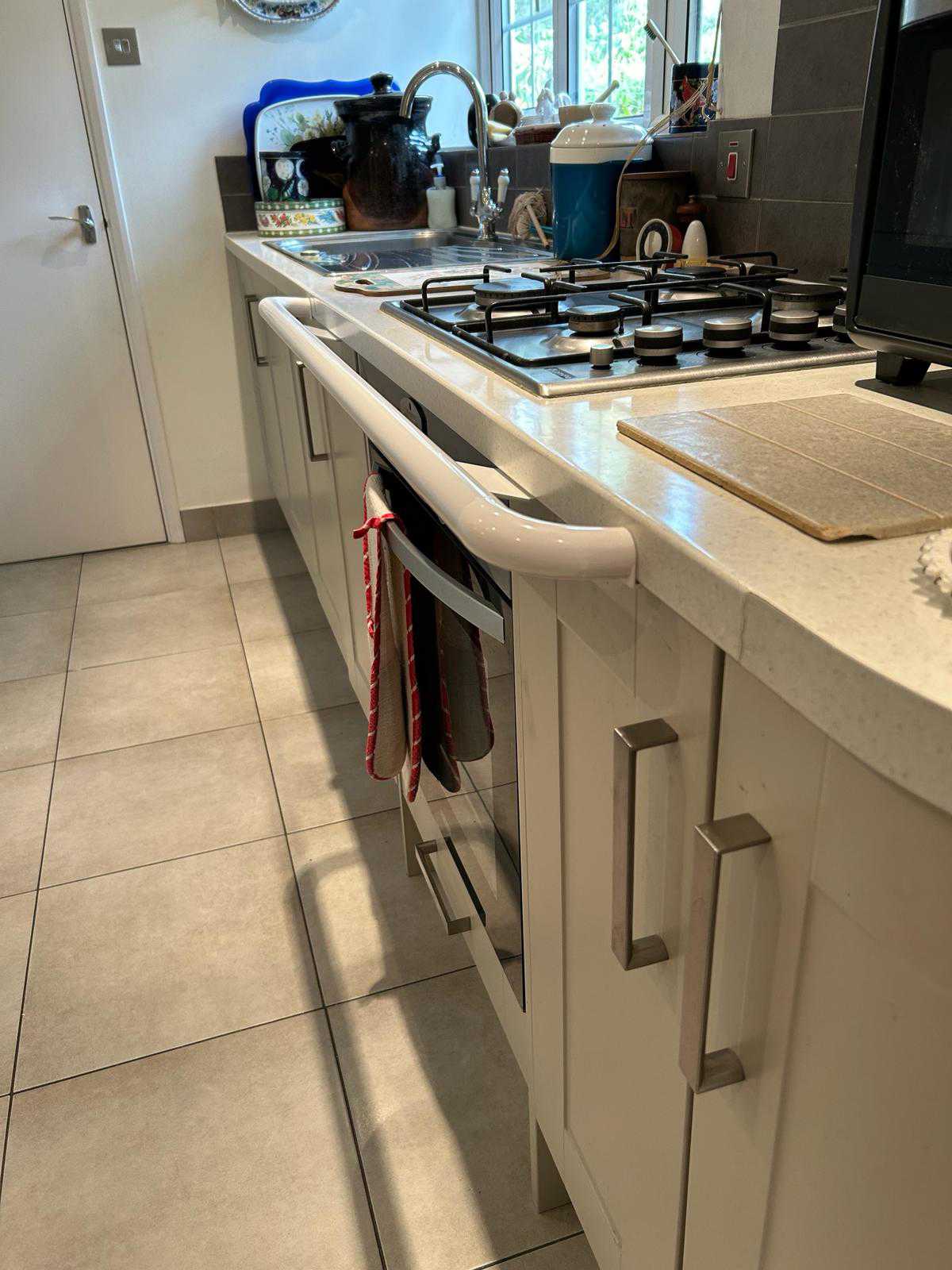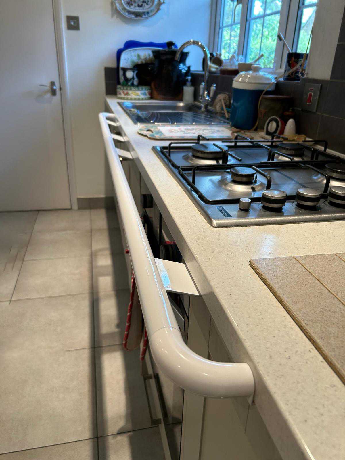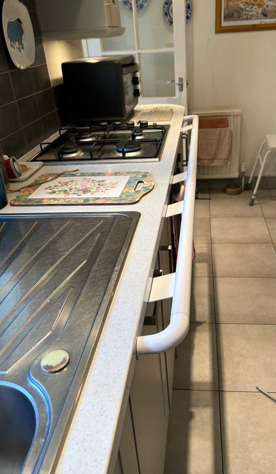 Fitting Grab-A-Rail in strategic places in the kitchen - near the sink, the kettle, microwave enhances safety and restores confidence. The rails were installed by Grab A Rail Fitting Solutions throughout the kitchen 30 minutes prior to the video being made. Due to age and health issues, the gentleman struggles with mobility and balance, he had previously fallen in his kitchen. His family contacted Grab A Rail and our rails were supplied within seven days. As you watch the video you can see how his confidence grow with each step as he uses the rail. Install before a fall. Grab-A-Rail.